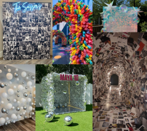 – Arcos de balões orgânicos em entradas e painéis fotográficos